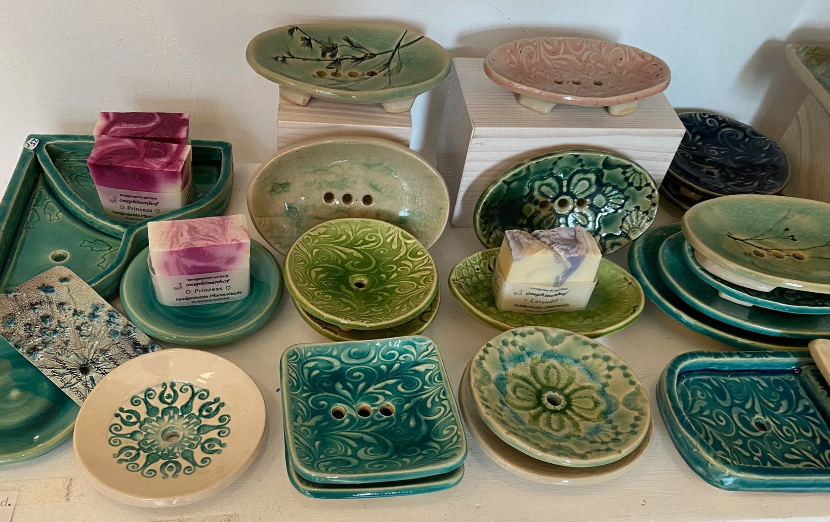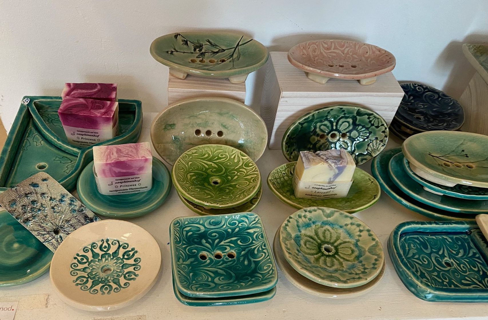 ... ist ein Laden mit Ateliercharakter. Bei uns gibt es nur handgefertigte Dinge von kreativen Geistern, im Grunde alles Unikate. Gebrauchsgegenstände, sowie künstlerische Objekte, Schönes und Funktionelles in traditionellem, verspieltem oder modernem Design. Zur Zeit reicht die Produktpalette von Schmuck über Keramik, Porzellan, Glas, Textilkunst bis hin zu Papierobjekten, Spielzeug, Grafiken und Originale, Karten und Seifen. Wir wollen begeistern und überraschen. Wir wollen, dass unsere “Schätze“ viele neue Besitzer finden und wir möchten immer wieder neue Akzente mit neuen Schmuckkreationen und tollen Produkten von interessanten Herstellern setzen.